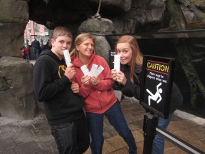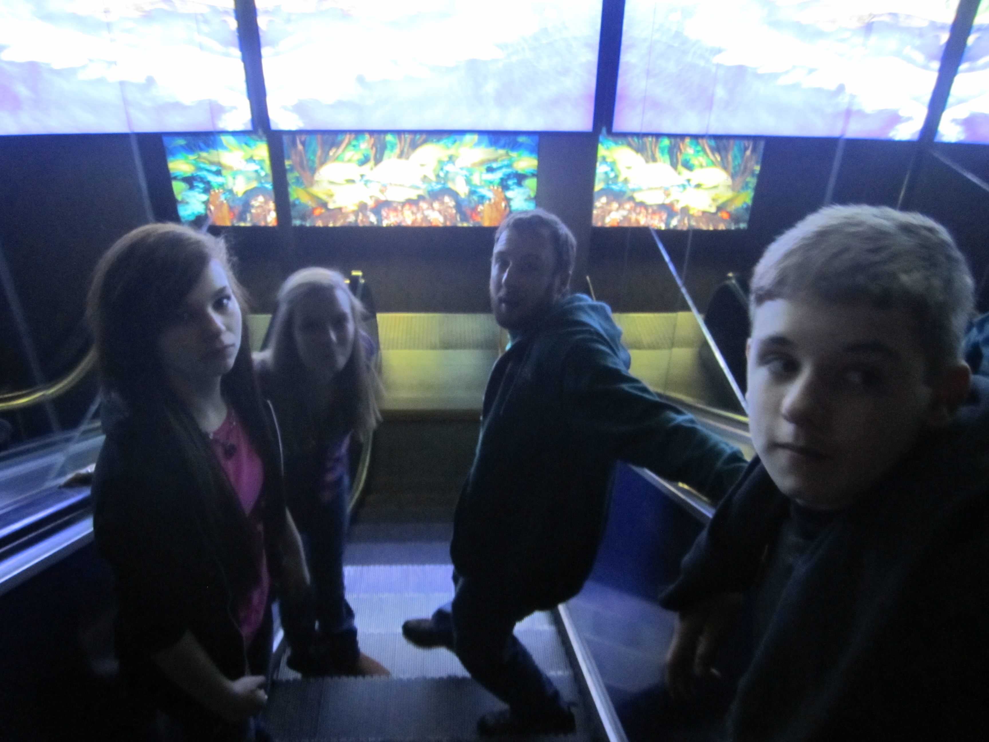 Our first trip through began just after 10 A.M. We didn’t break for lunch until 1:00. We relaunched our journey at around 1:30, and noticed quite a difference in crowd levels. There were hoards of children amassed in every available viewing portal. The fish were all hiding in terror, and I fought back the urge to do the same. As we began to descend the Underwater Viewing Area, Kelly shouted, “Abort! Abort!” and we all agreed. We quickly headed to the safety of the exit area, jumping over screaming sticky toddlers all the way out.