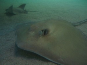 We then moved on the the first pool or tank or whatever you would call it. It was filled with giant rays, sharks and other big fish. At this point it wasn’t yet too crowded, so we had plenty of time to linger and really watch all the marine life interact. We hung out here for a while, observing the scuba men as they fed lettuce to the various creatures. Lettuce seemed to be one of the most popular cuisines, which was odd to us since it doesn’t normally grow beneath the sea. I guess these creatures were more accustomed to the salad bar. If we waited long enough we would most likely see a scuba man with a plate of breadsticks. For what we paid to get in, I hoped they would be endless.
