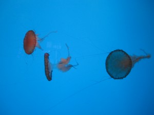 Our last exhibit before lunch was awesome, and not just because of the name. Well, mostly because of the name. It was “Jellies Invasion.” All different types, sizes and colors of jellyfish. While not my favorite creature when in the water, through the safety of a glass tank they are fascinating!