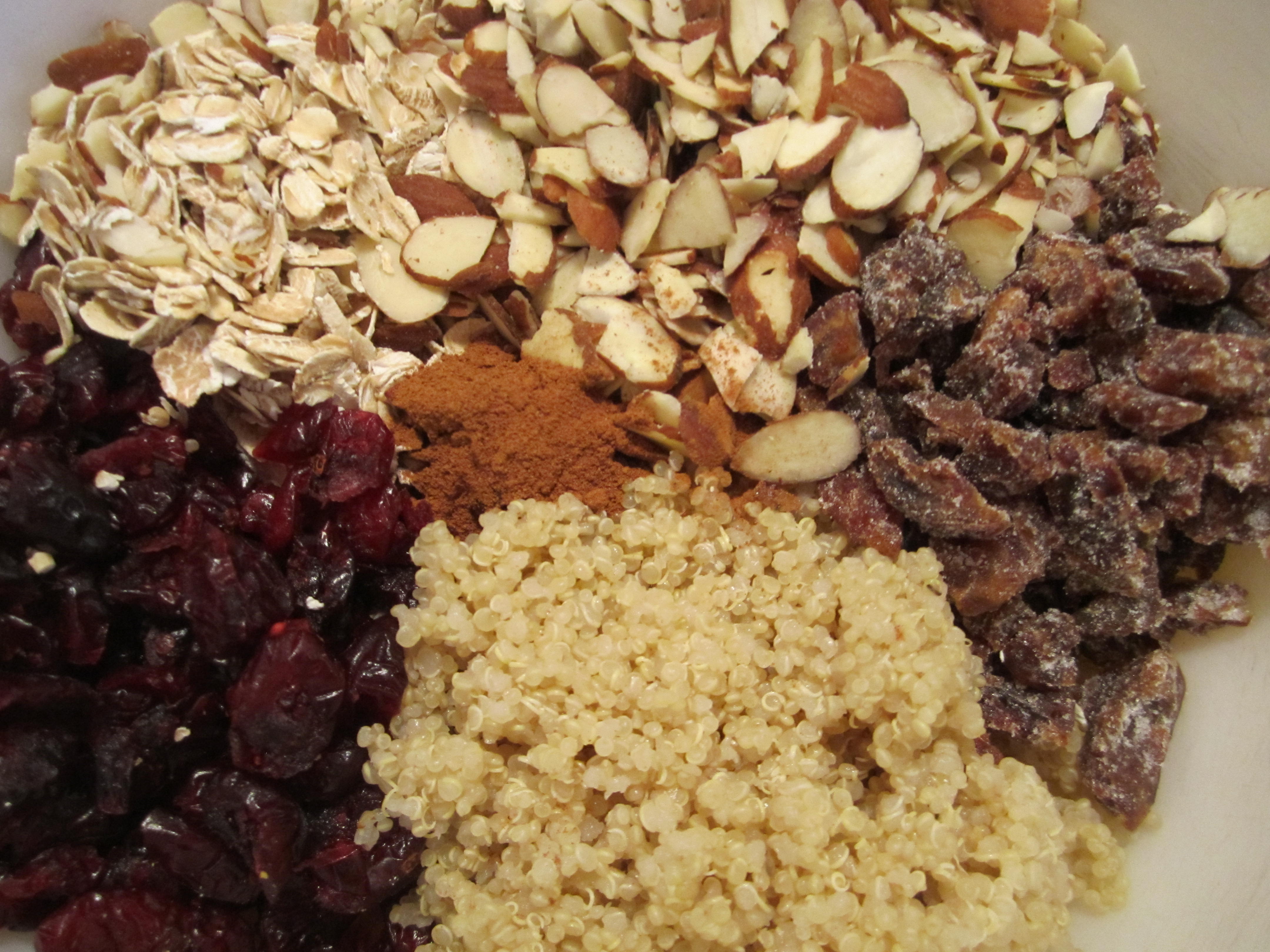 7. Incorporate the quinoa, dried fruits and nuts into the batter.