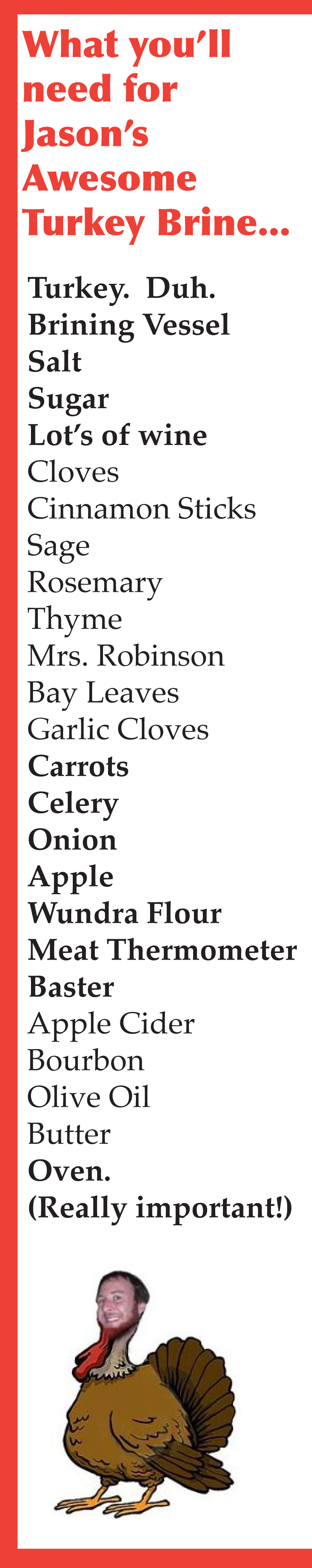 Well, I propose we put the Turkey back in Turkey Day! Stop settling for the same old lame turkey, and demand a moist, flavorful main-course treat!